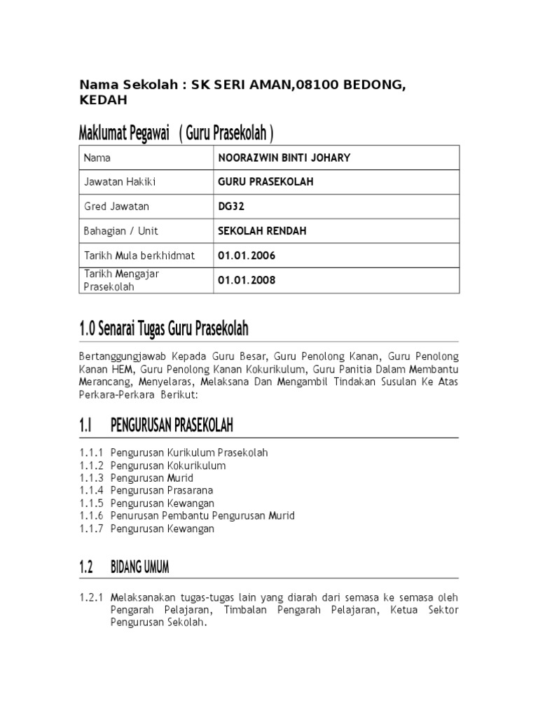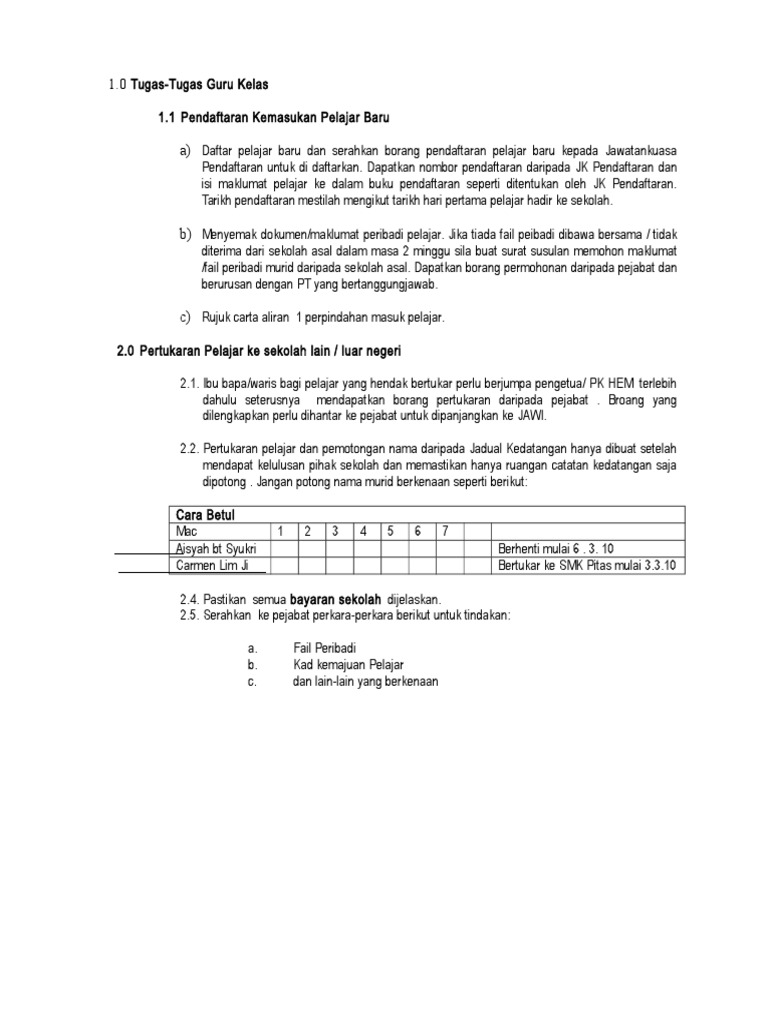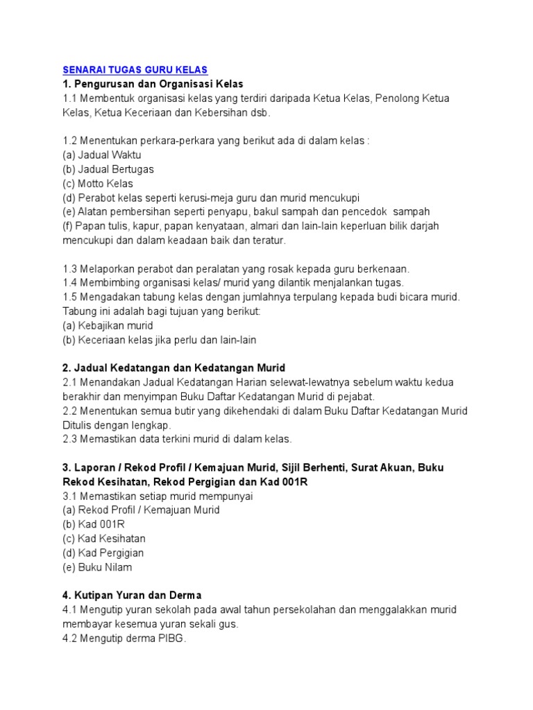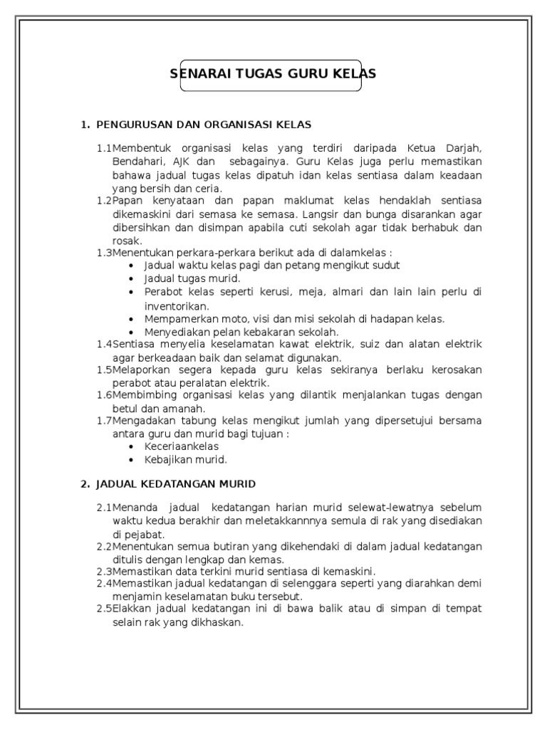 Doc Tanggungjawab Guru Kelas Senarai Tugas Guru Kelas Lisha Baby Academia Edu